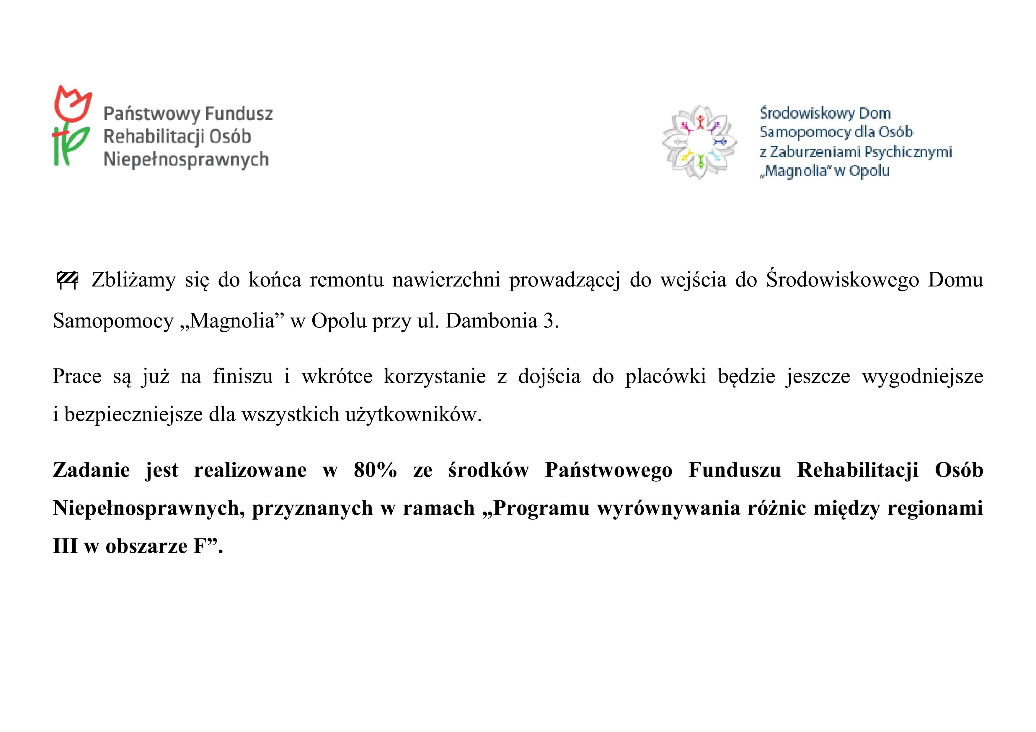 Remont nawierzchni prowadzącej do ŚDS "Magnolia"